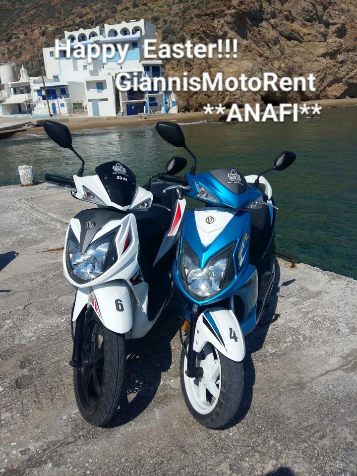 Η Giannis Moto Rent είναι μια εταιρία ενοικίασης μοτοσικλετών που δραστηριοποιείται για πρώτη φορά στην Ανάφη το 2015 και από τότε συνεχίζει να προσφέρει στους πελάτες της υψηλής ποιότητας υπηρεσίες.